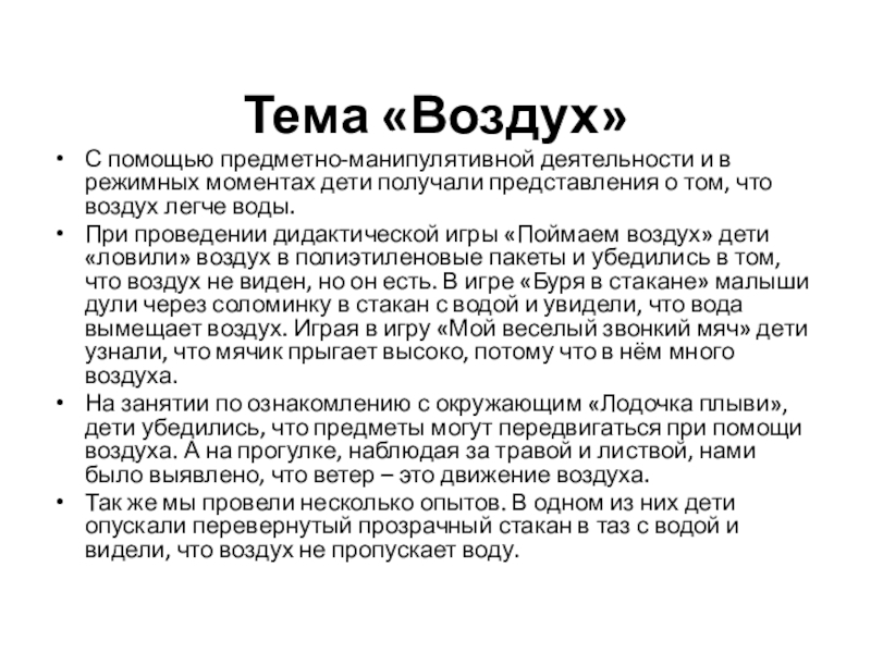 Тема «Воздух»