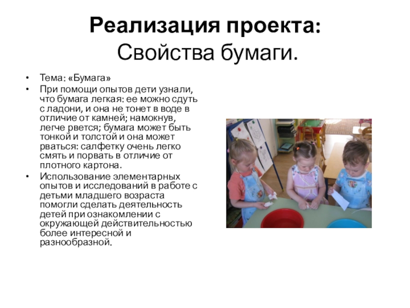 При помощи опытов дети узнали, что бумага