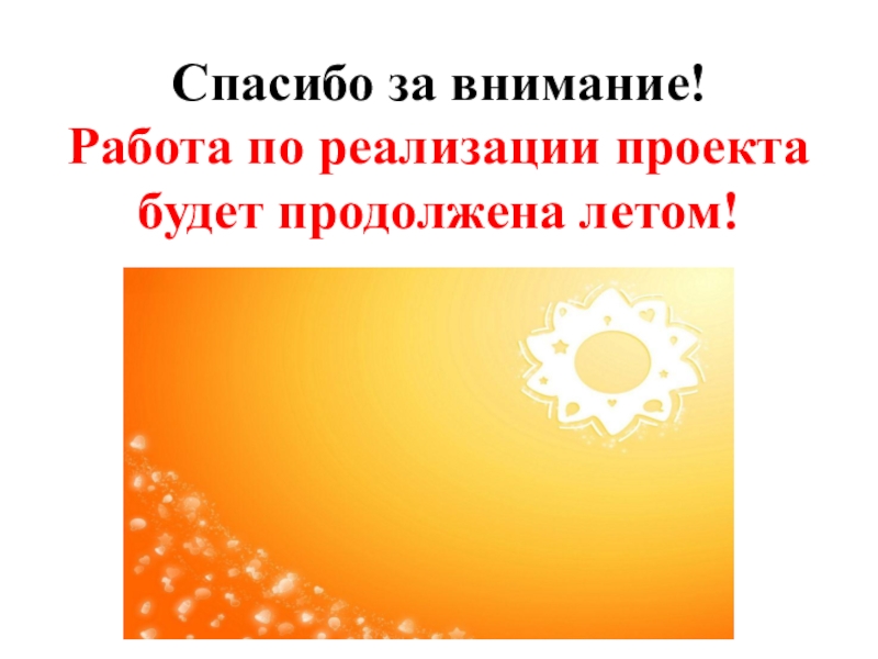 Работа по реализации проекта будет продолжена летом!