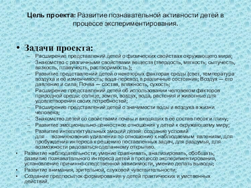 Слайд 2Цель проекта: Развитие познавательной активности детей в процессе экспериментирования.