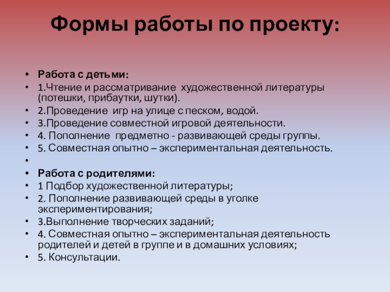 Слайд 3Формы работы по проекту: