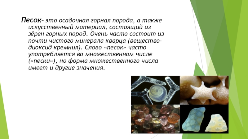Слайд 2Песок- это осадочная горная порода, а также искусственный материал, состоящий из