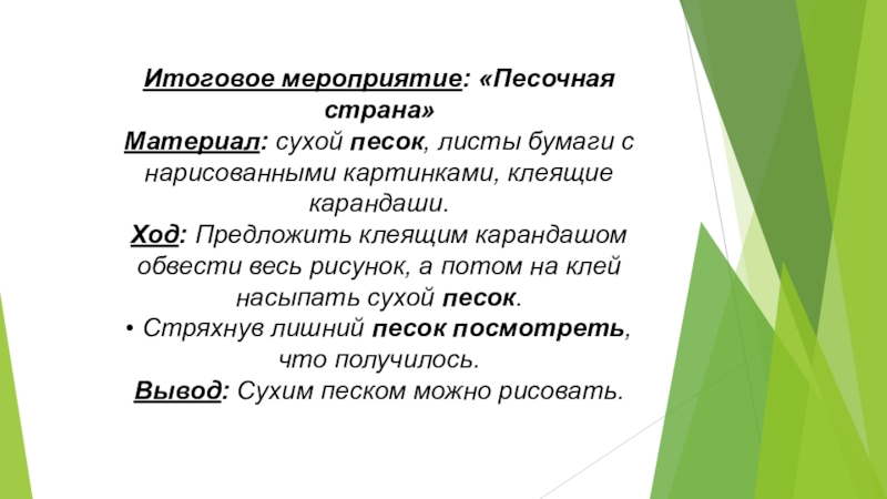 Слайд 19Итоговое мероприятие: «Песочная страна»
