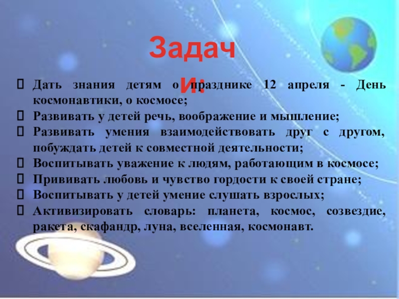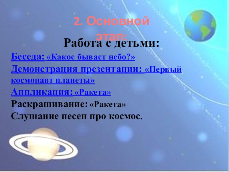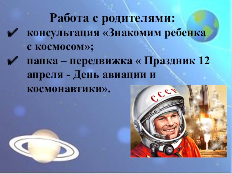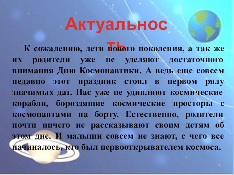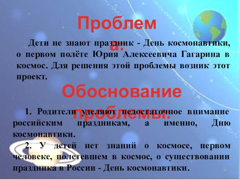 2. У детей нет знаний о космосе, первом человеке, полетевшем в космос, о существовании праздника в России - День космонавтики.