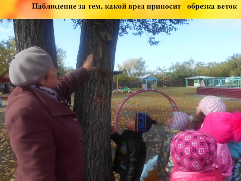 Рассматривание деревьев на участке детского сада – экологическая тропа.