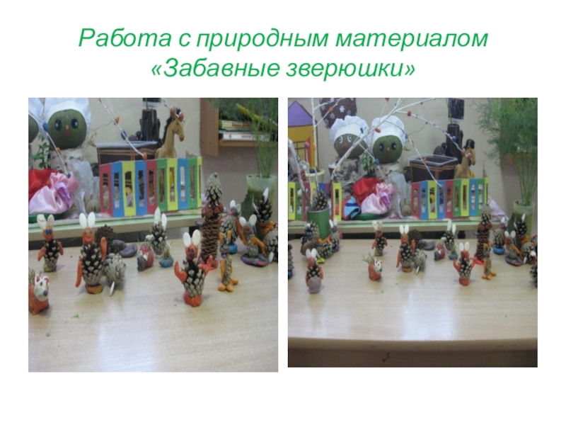 Слайд 15Работа с природным материалом «Забавные зверюшки»