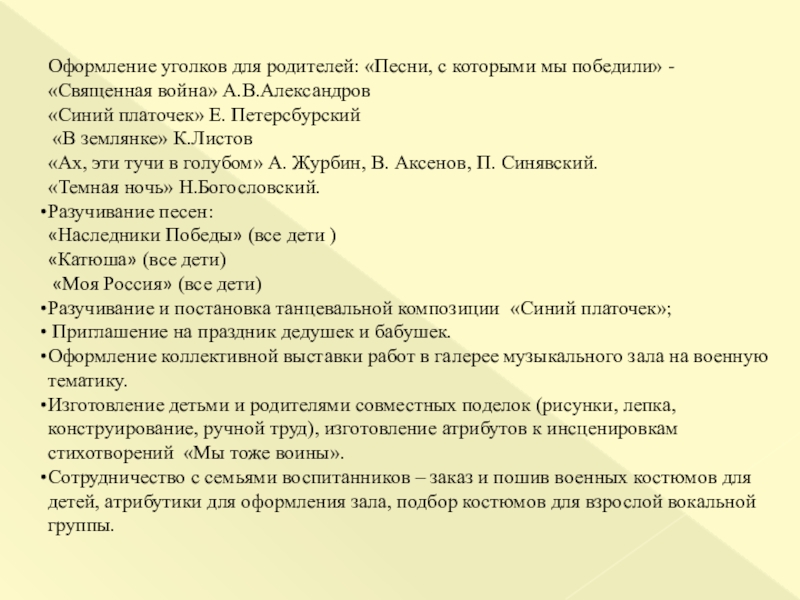Оформление уголков для родителей: «Песни, с которыми мы победили» -