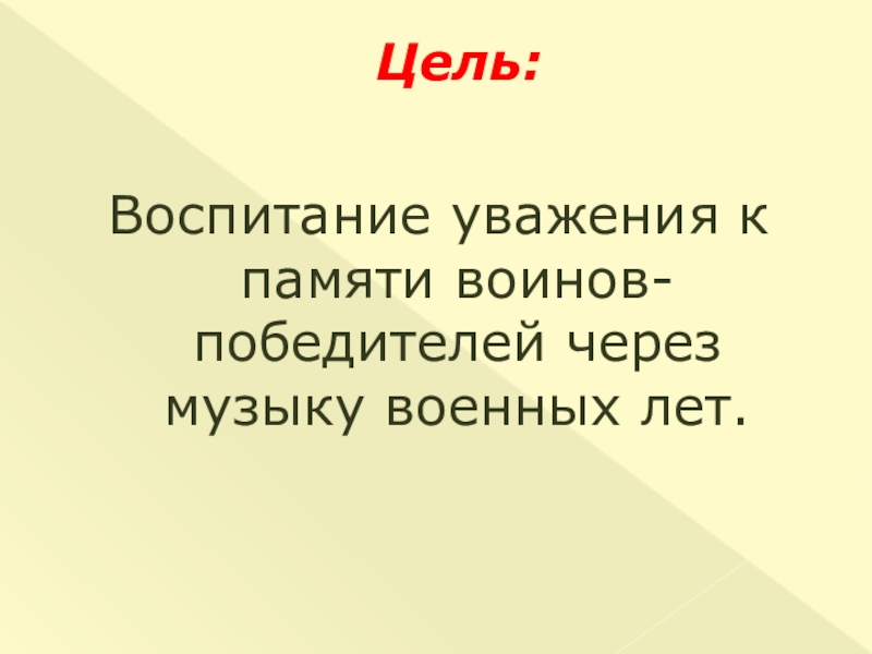 Воспитание уважения к памяти воинов-победителей через музыку военных лет.