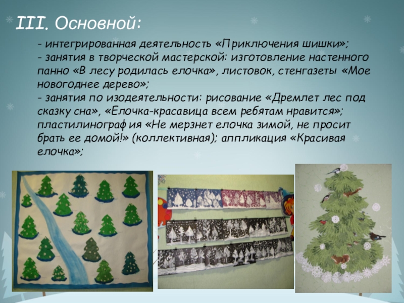 настенного панно «В лесу родилась елочка», листовок, стенгазеты «Мое новогоднее дерево»;