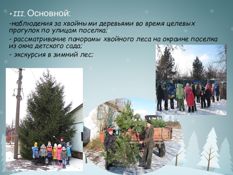 -наблюдения за хвойными деревьями во время целевых прогулок по улицам