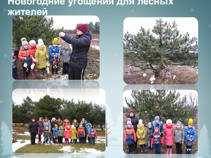Слайд 15Новогодние угощения для лесных жителей