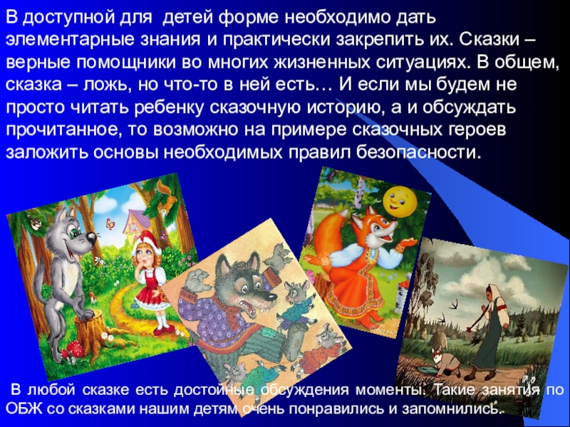 В любой сказке есть достойные обсуждения моменты. Такие занятия по ОБЖ со сказками нашим детям очень понравились и запомнились.