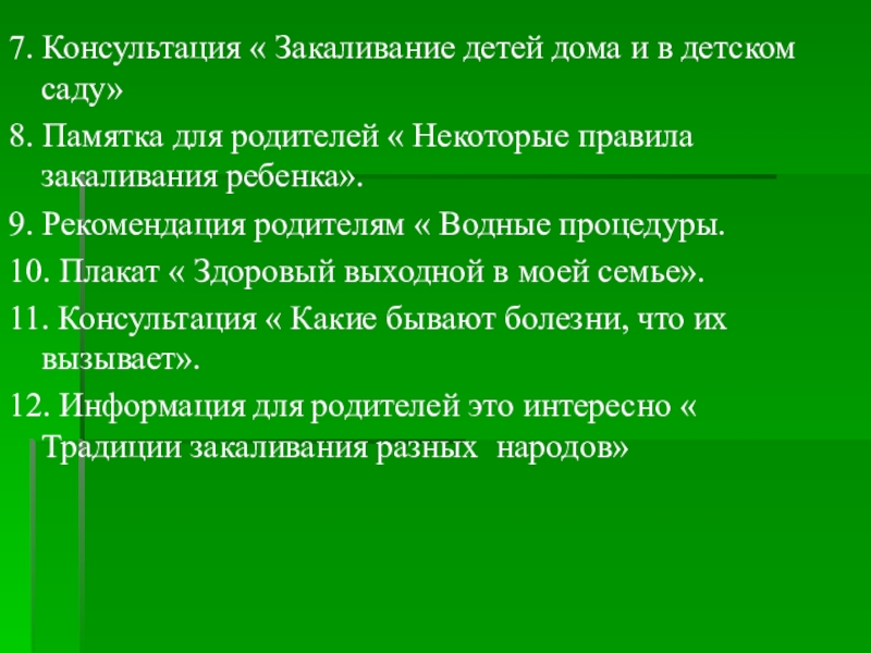 Слайд 67. Консультация « Закаливание детей дома и в детском саду»