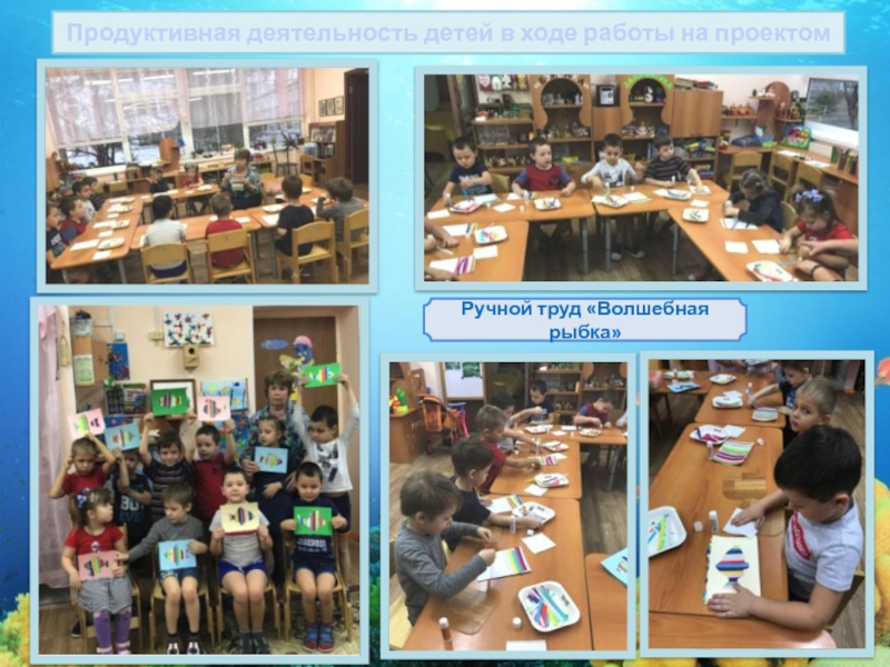 Слайд 20Продуктивная деятельность детей в ходе работы на проектом