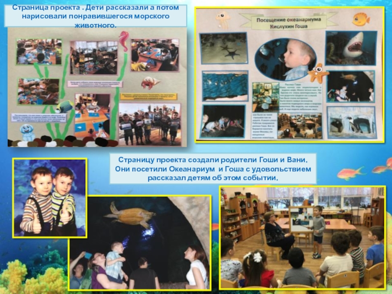 Слайд 18Страницу проекта создали родители Гоши и Вани. Они посетили Океанариум и