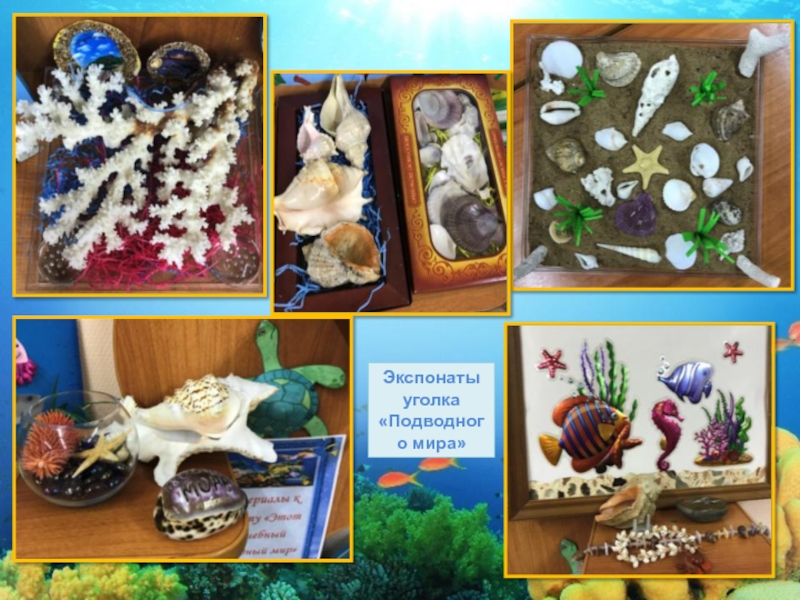 Слайд 12Экспонаты уголка «Подводного мира»