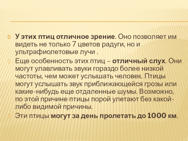 Слайд 7У этих птиц отличное зрение. Оно позволяет им видеть не только