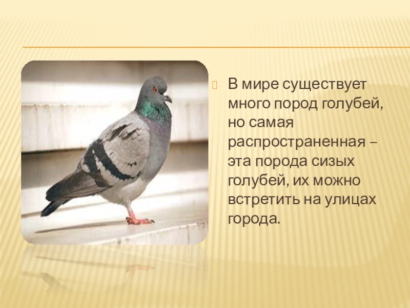 Слайд 2В мире существует много пород голубей, но самая распространенная – эта