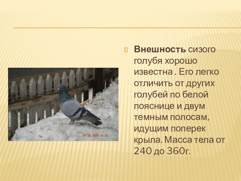 Слайд 3Внешность сизого голубя хорошо известна . Его легко отличить от других голубей по