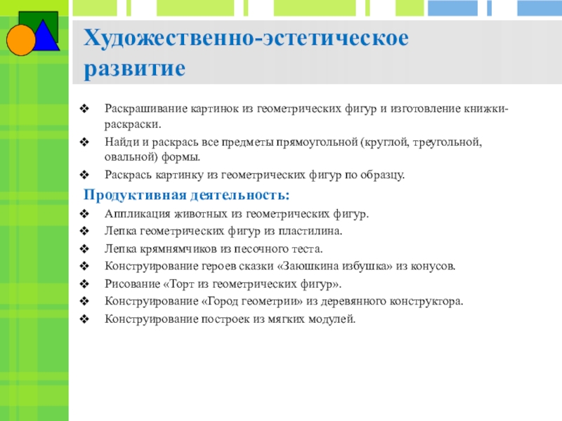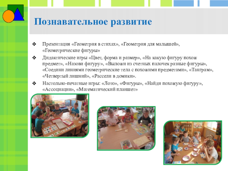 Направленных на развитие представлений о форме предметов и геометрических фигур.