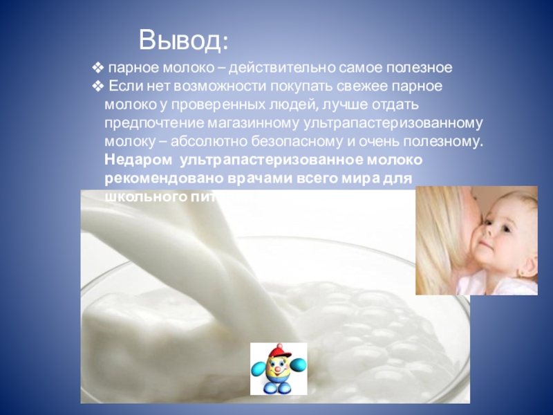 желательно пить молоко прошедшее обработку;