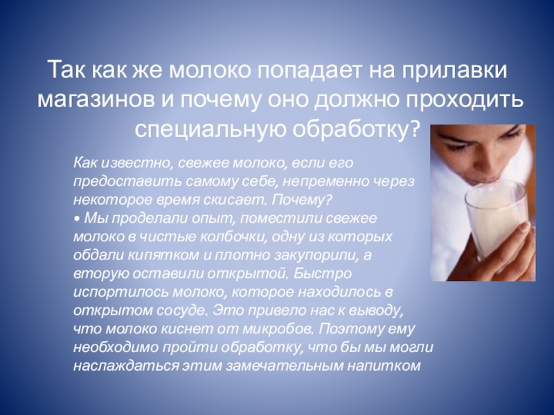 что молоко киснет от микробов. Поэтому ему необходимо пройти обработку, что бы мы могли наслаждаться этим замечательным напитком