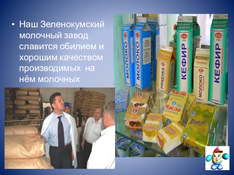Слайд 18Наш Зеленокумский молочный завод славится обилием и хорошим качеством производимых на