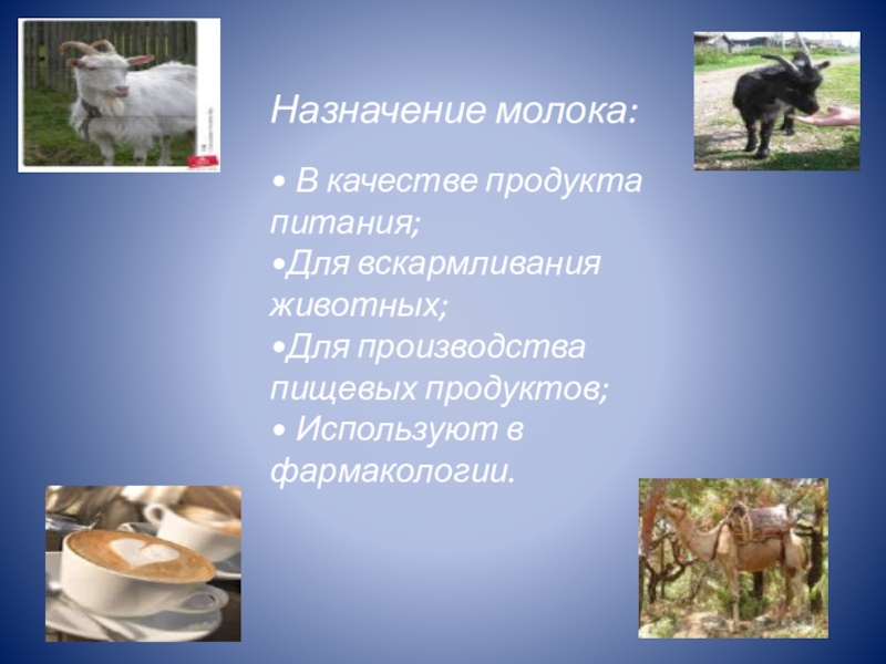 Слайд 10Назначение молока: