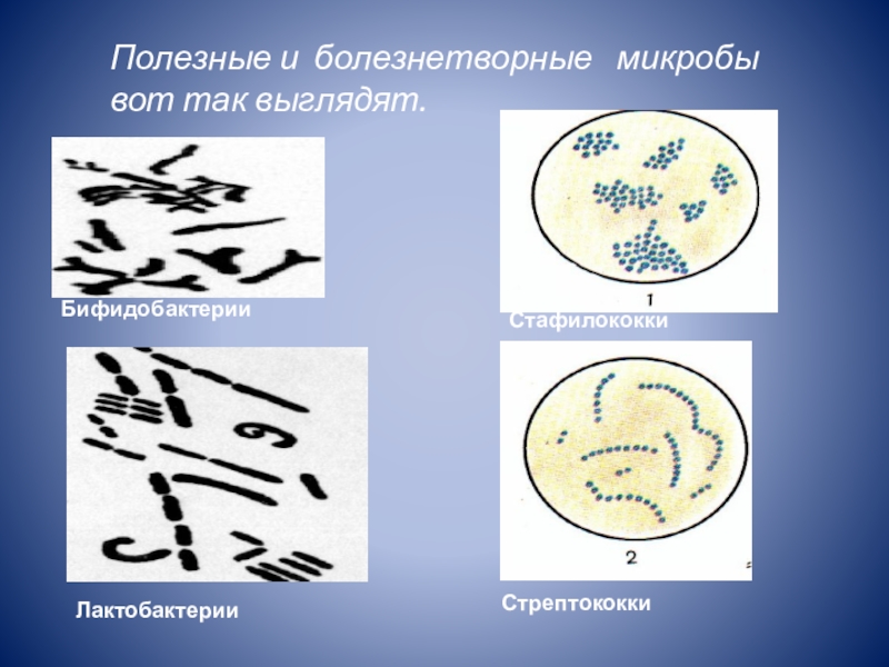 Слайд 14Полезные и болезнетворные микробы
