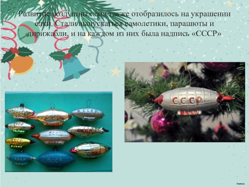 Слайд 10Развитие воздушных сил также отобразилось на украшении елки. Стали выпускаться самолетики,