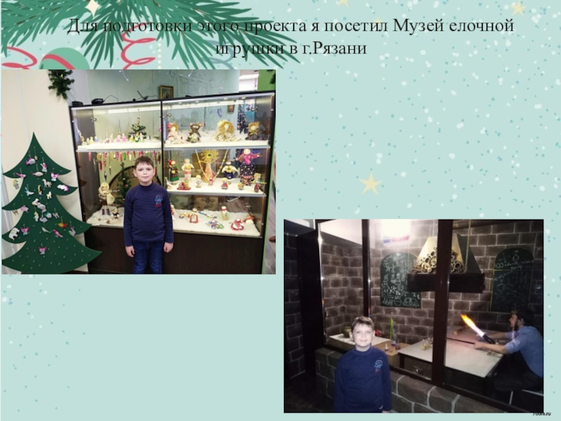 Слайд 15Для подготовки этого проекта я посетил Музей елочной игрушки в г.Рязани