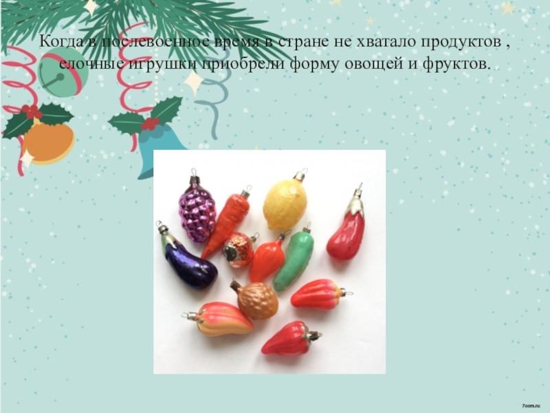 Слайд 9Когда в послевоенное время в стране не хватало продуктов , елочные