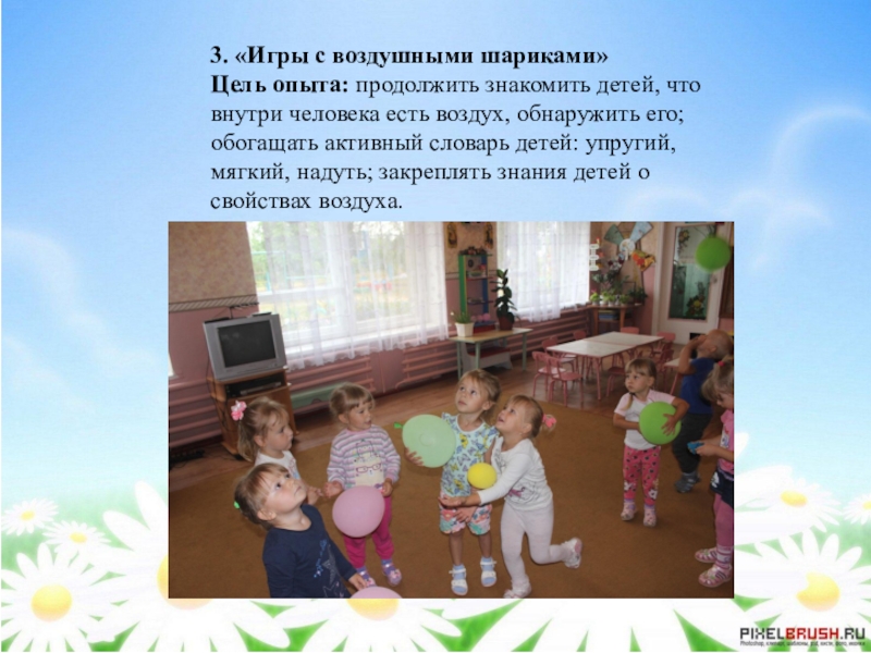 человека есть воздух, обнаружить его; обогащать активный словарь детей: упругий, мягкий, надуть; закреплять знания детей о свойствах воздуха.