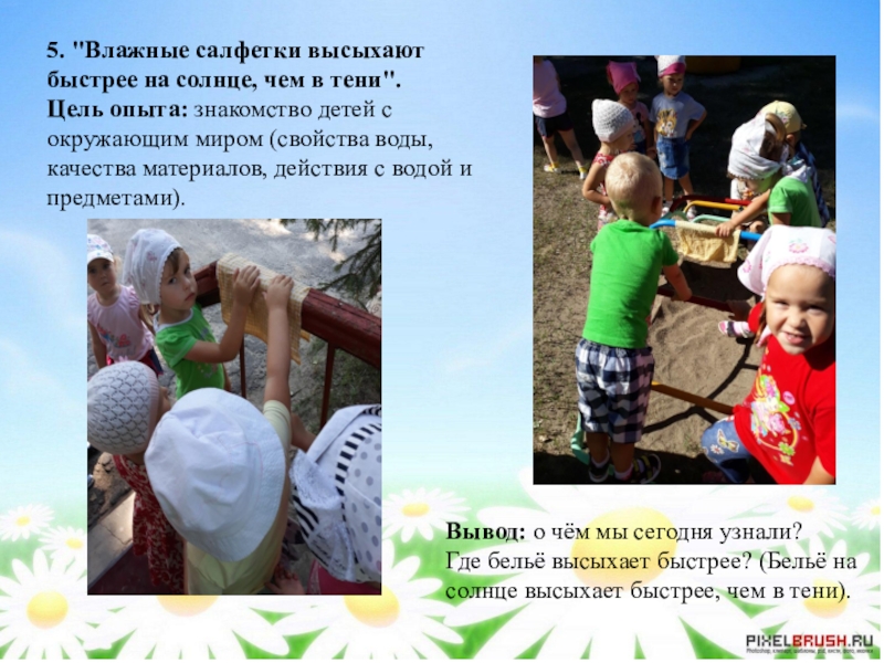 Слайд 185. "Влажные салфетки высыхают быстрее на солнце, чем в тени".