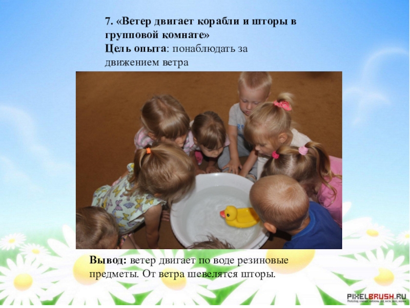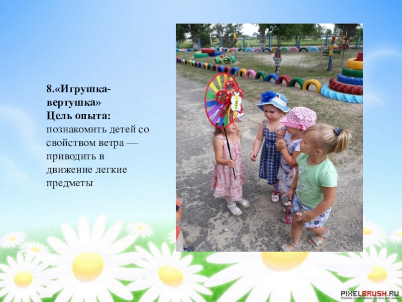 Цель опыта: познакомить детей со свойством ветра — приводить в движение