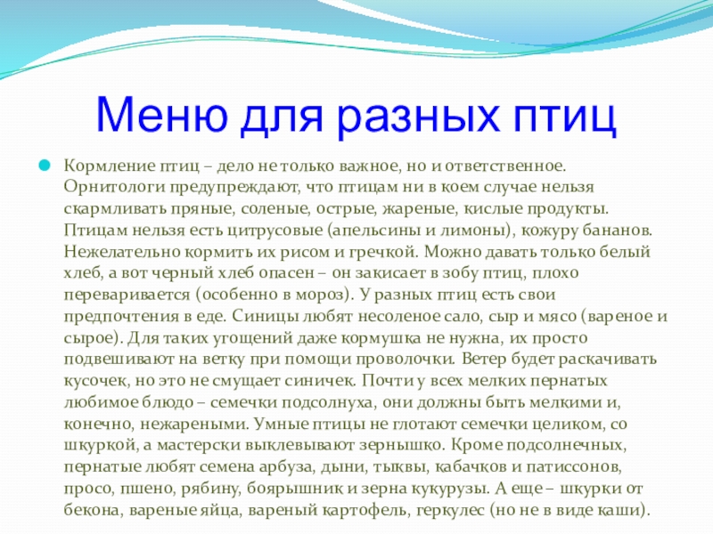 Слайд 10Меню для разных птиц