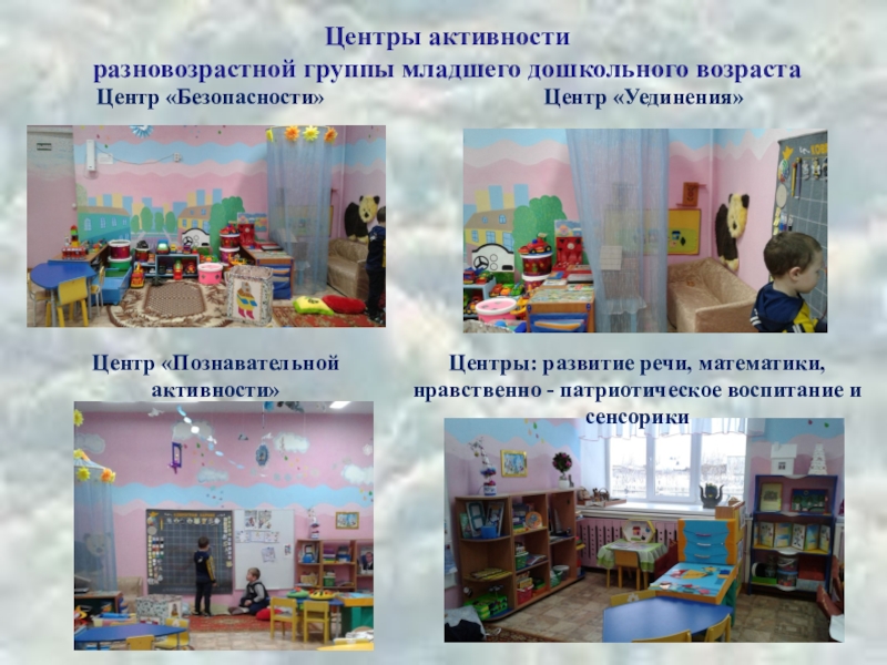 Центры: развитие речи, математики, нравственно - патриотическое воспитание и сенсорики
