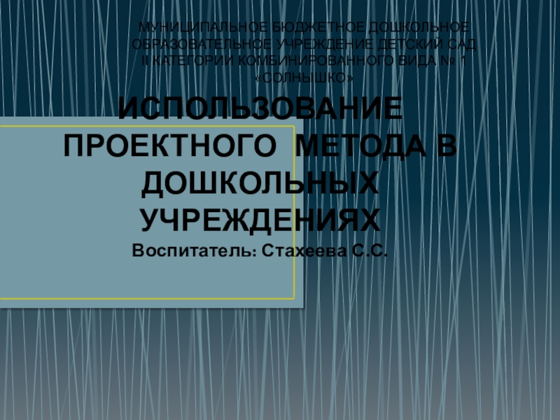 Слайд 1ИСПОЛЬЗОВАНИЕ ПРОЕКТНОГО МЕТОДА В ДОШКОЛЬНЫХ УЧРЕЖДЕНИЯХ