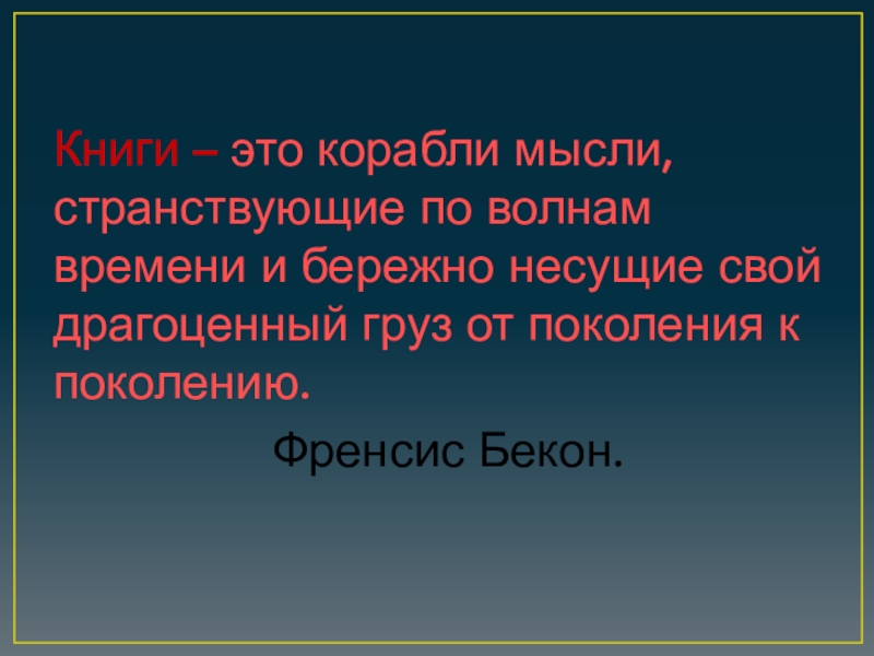 Слайд 2Книги – это корабли мысли, странствующие по волнам времени и бережно