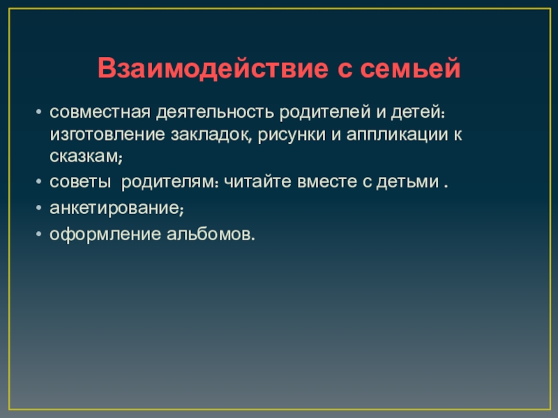 Слайд 22Взаимодействие с семьей