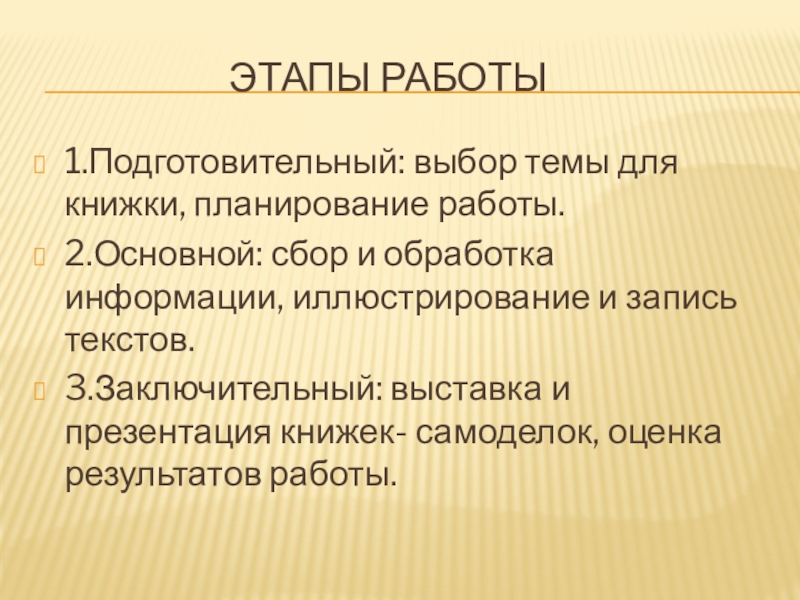 3.Заключительный: выставка и презентация книжек- самоделок, оценка результатов работы.