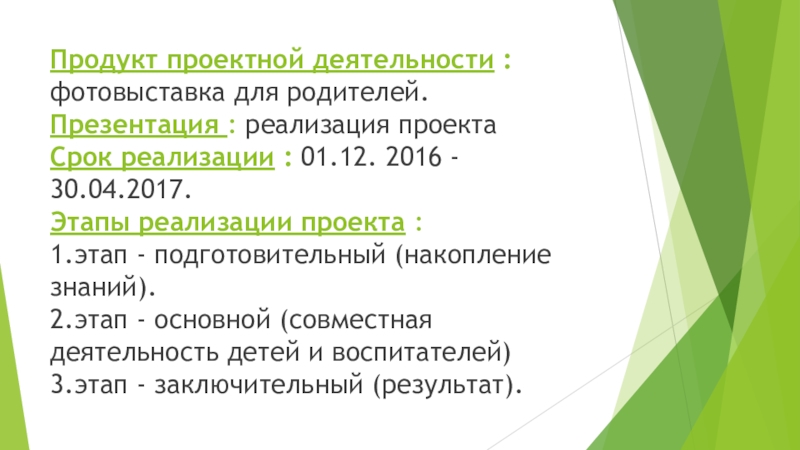 Слайд 6Продукт проектной деятельности : фотовыставка для родителей.