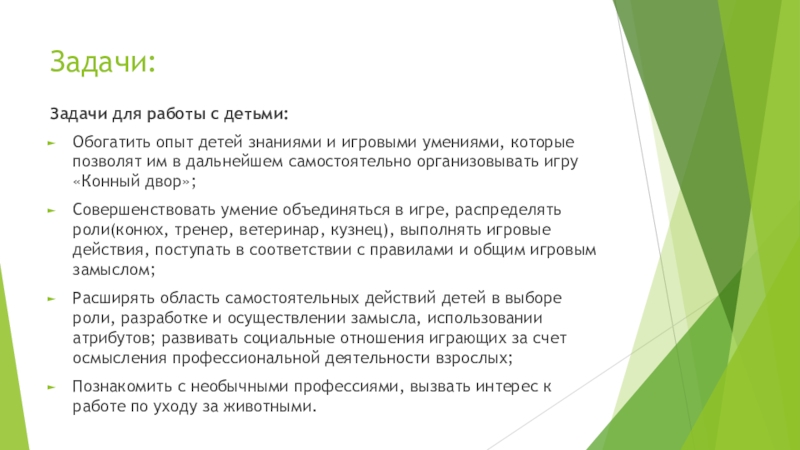 Задачи для работы с детьми: