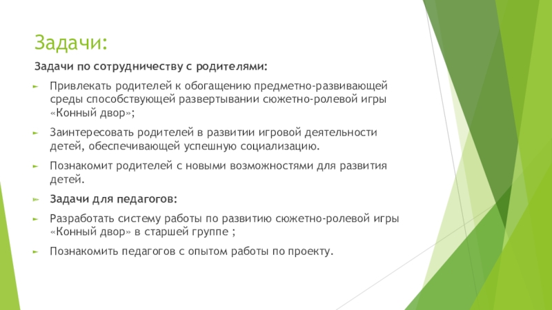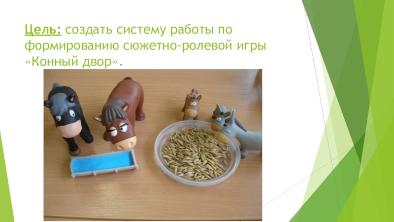 Слайд 2Цель: создать систему работы по формированию сюжетно-ролевой игры «Конный двор».