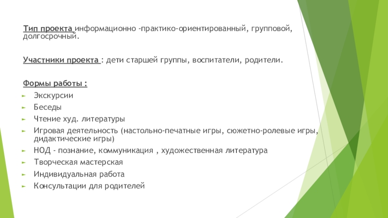 Тип проекта информационно -практико-ориентированный, групповой, долгосрочный.
