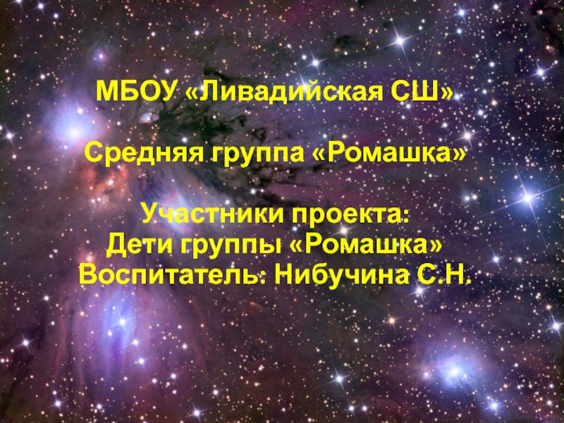 Слайд 3МБОУ «Ливадийская СШ» Средняя группа «Ромашка» Участники проекта: Дети группы «Ромашка» Воспитатель: Нибучина С.Н.