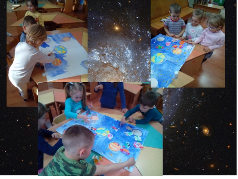 Цель:Сформировать у детей начальные элементарные представления о космосе.Активизировать фантазию и творческие способности детей.