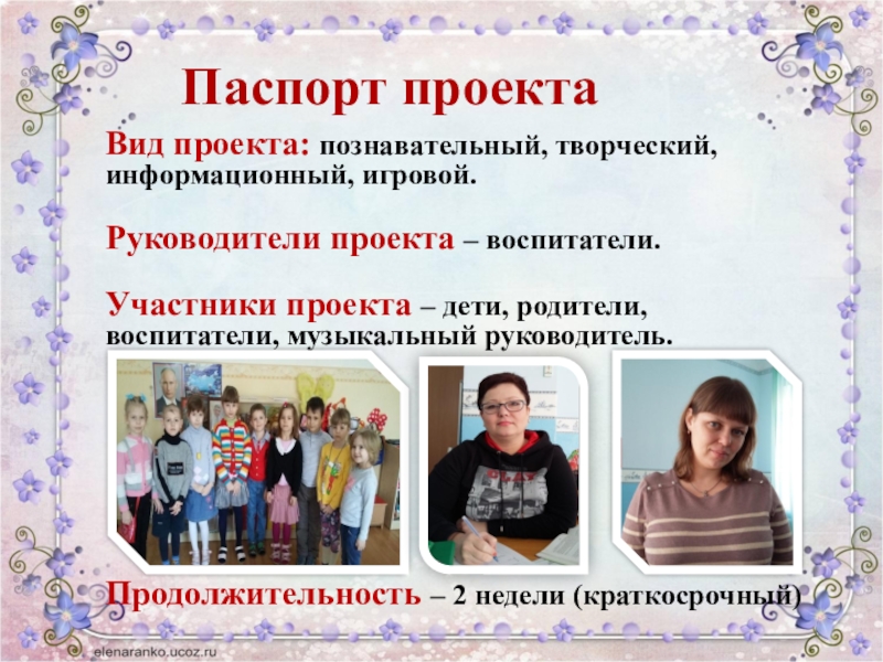 Участники проекта – дети, родители, воспитатели, музыкальный руководитель.