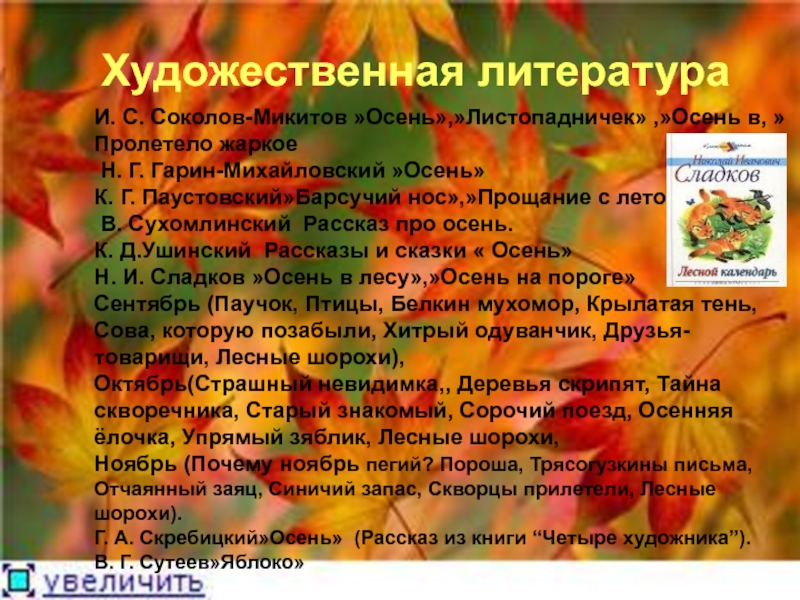 И. С. Соколов-Микитов »Осень»,»Листопадничек» ,»Осень в, »Пролетело жаркое