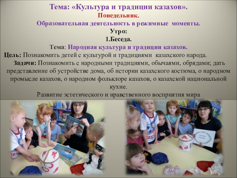 Цель: Познакомить детей с культурой и традициями казахского народа.